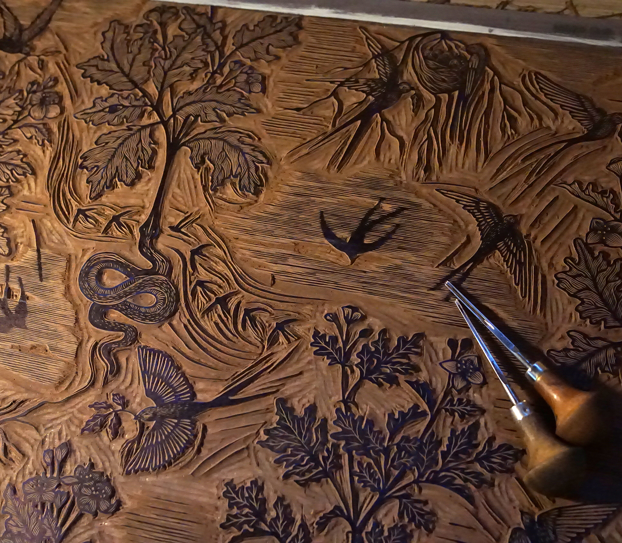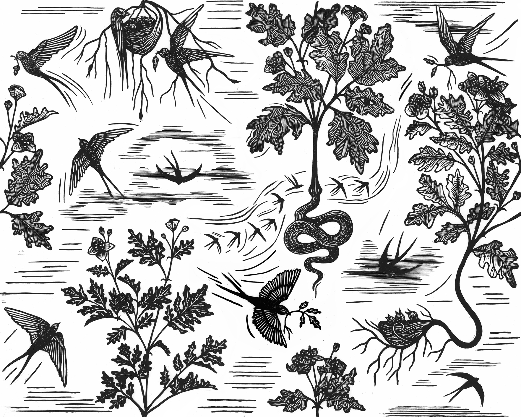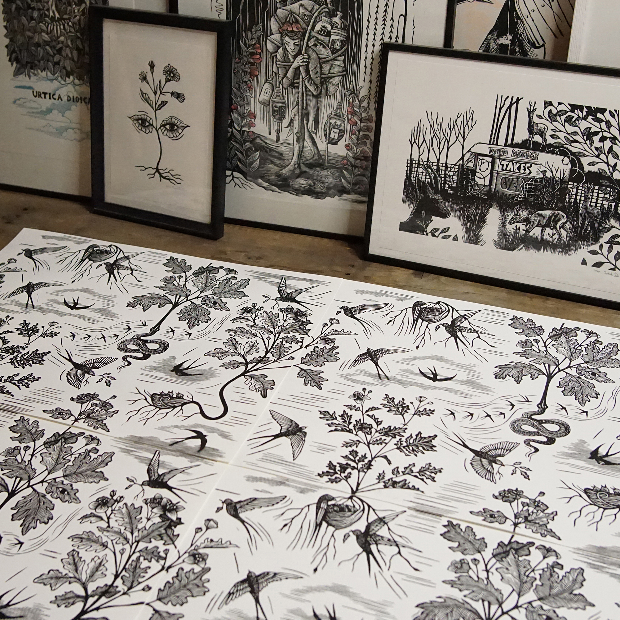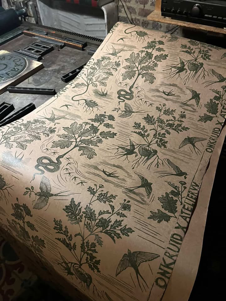 Wallpaper 'Stinkende Gauwe' Ambachtelijk gedrukt behangpapier met duurzame inkt en op kwaliteitsvol papier.Beschikbaar via : www.ateliervv.be Date: 2026 Client: Atelier VV Role: Designer en printmaker URL: www.ateliervv.be Tags: Illustration